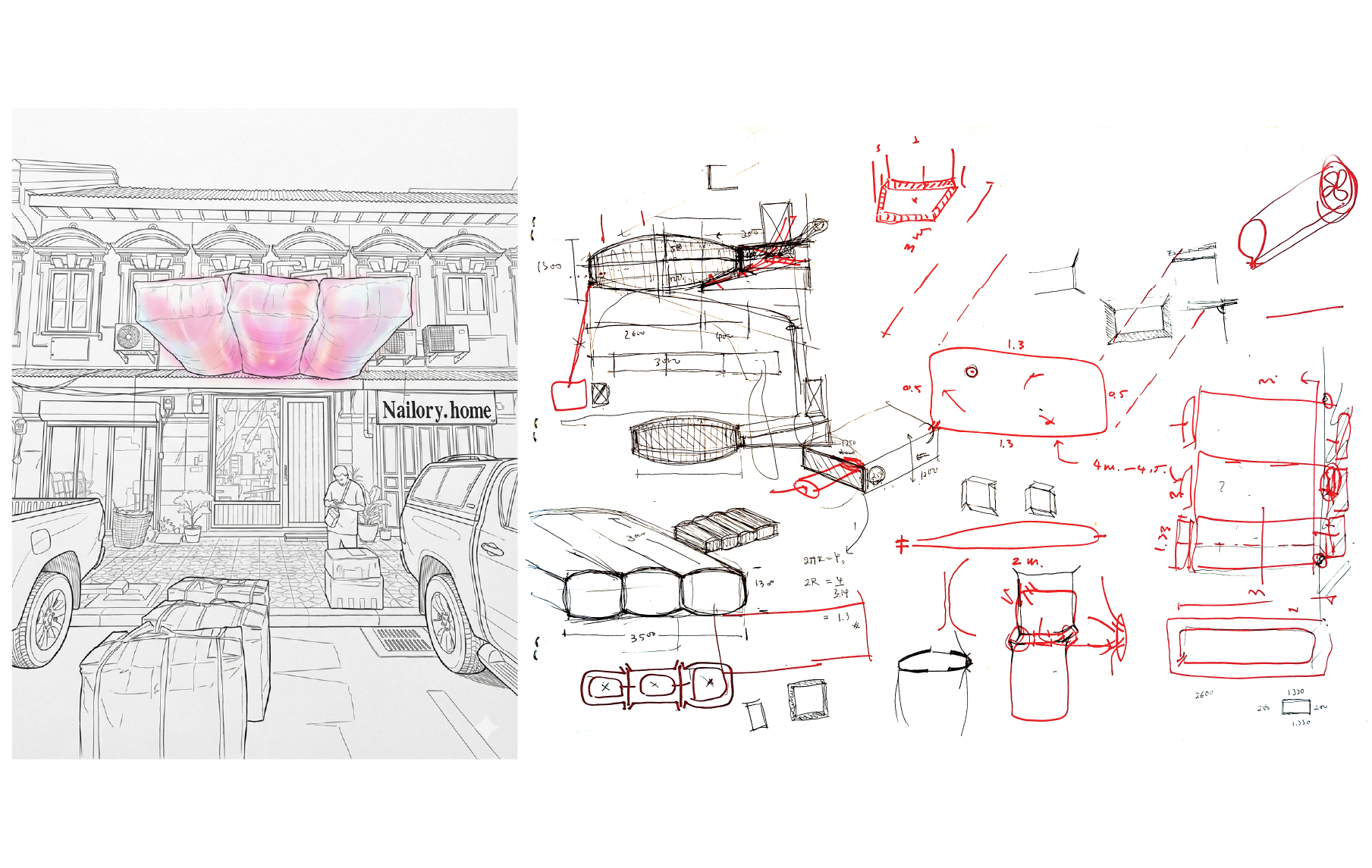 Cloud Shelter ต้องการขยายขอบเขตของร้าน ออกมาสู่ภายนอก เพื่อรองรับผู้คนจำนวนมากที่หลั่งไหลเข้ามาในงาน Design Week ซึ่งไม่ได้เพียงแค่กันแดดหรือกันฝน แต่ตั้งใจสร้าง “Landmark ที่เป็นมิตร” ด้วยรูปทรงที่ดูเบาสบายและเข้าถึงง่าย สามารถมองเห็นได้ชัดเจนจากระยะไกล ทำหน้าที่เป็นจุดนัดพบและจุดพักผ่อนที่สร้างชีวิตชีวาให้กับย่าน