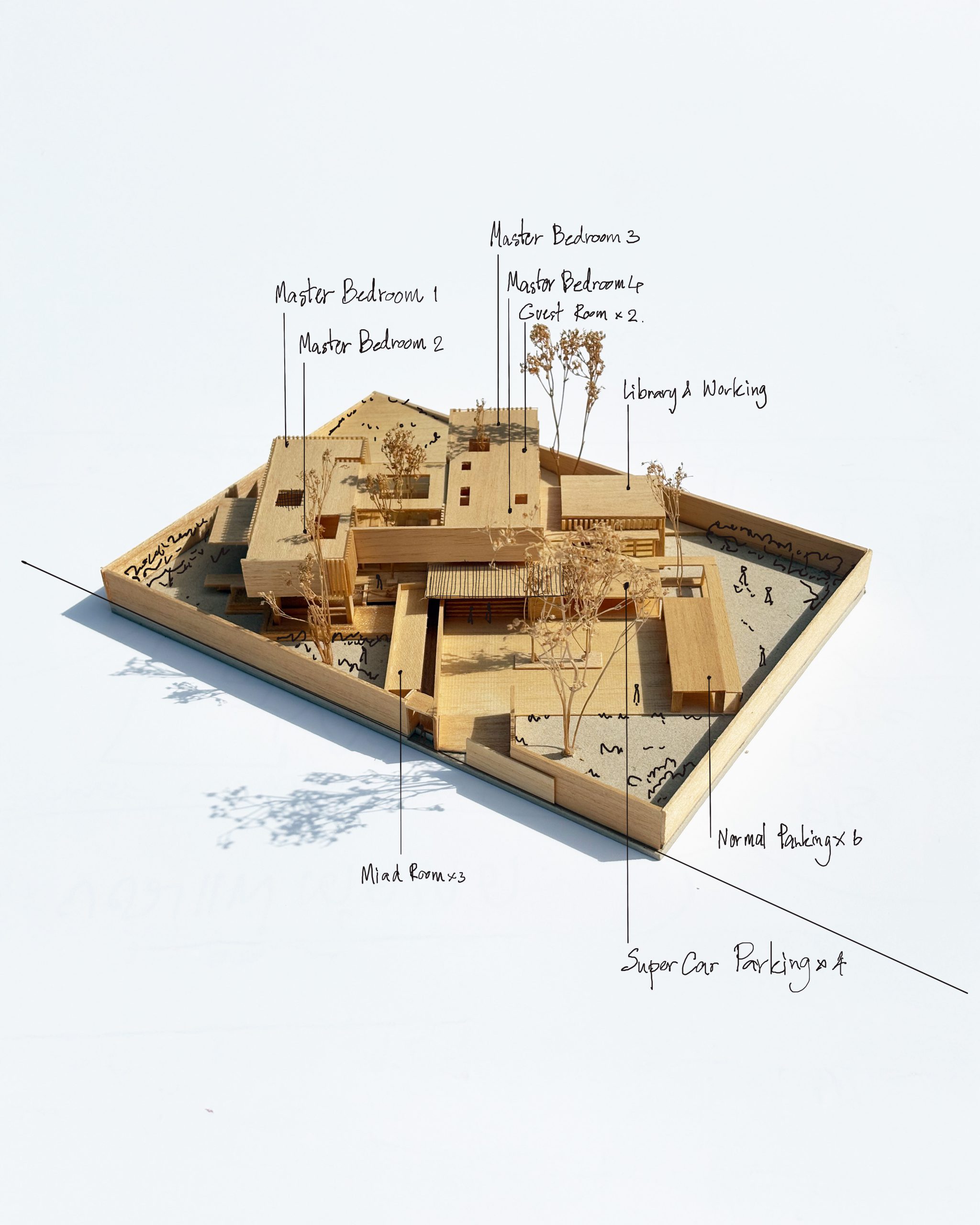 ถึงแม้ว่าสุดท้ายลูกค้าจะได้ไปต่อ แต่เราก็สนุกกับการออกแบบสุดๆ ถ้าเห็นในแปลนจะเห็นว่าห้องมาสเตอร์แต่ละห้องจะมีคาเรกเตอร์และสไตล์ แตกต่างกันสุดๆ ห้องลูกชายที่มีความญี่ปุ่น มีเสื้อตาตามิ ห้องลูกสาวที่ชอบใช้ชีวิตในห้อง ห้องลูกสาวอีกคนที่อยากมีห้องซาวน่าและจากุสซี่ส่วนตัว ห้องพระที่เหมือนเป็นงานประติมากรรม และอื่นๆ